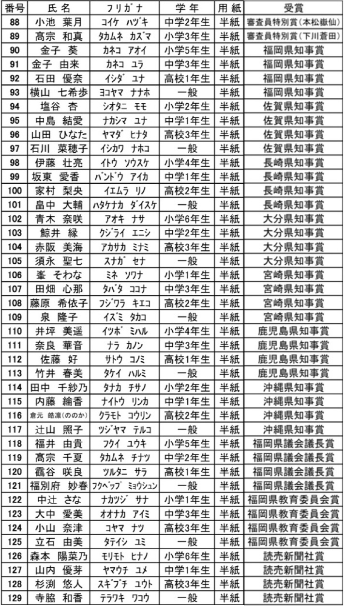 宮地嶽第58回光の道全国競書大会【受賞者一覧】