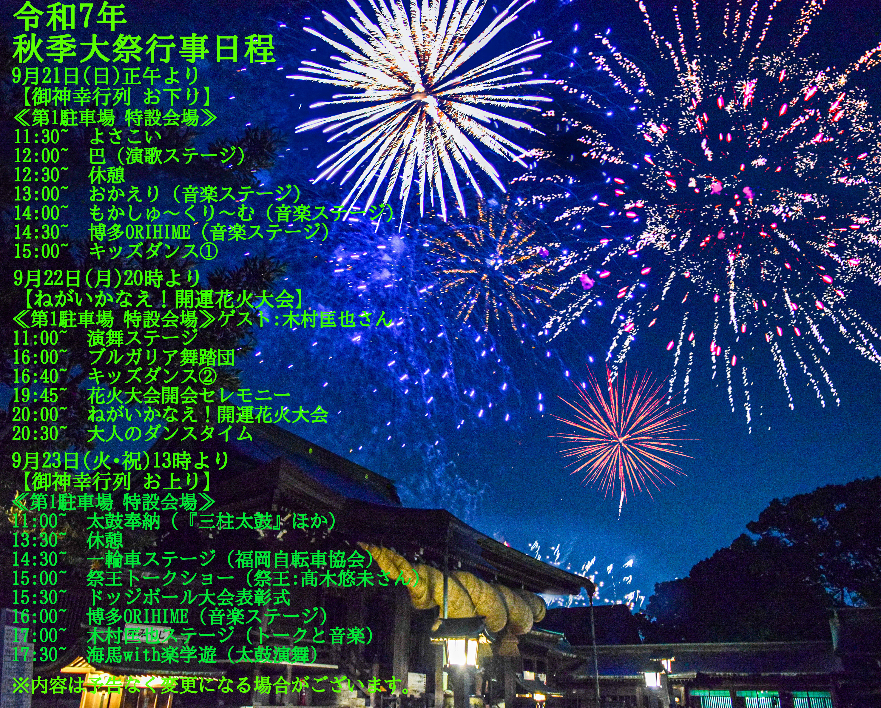 秋季大祭•催事日程